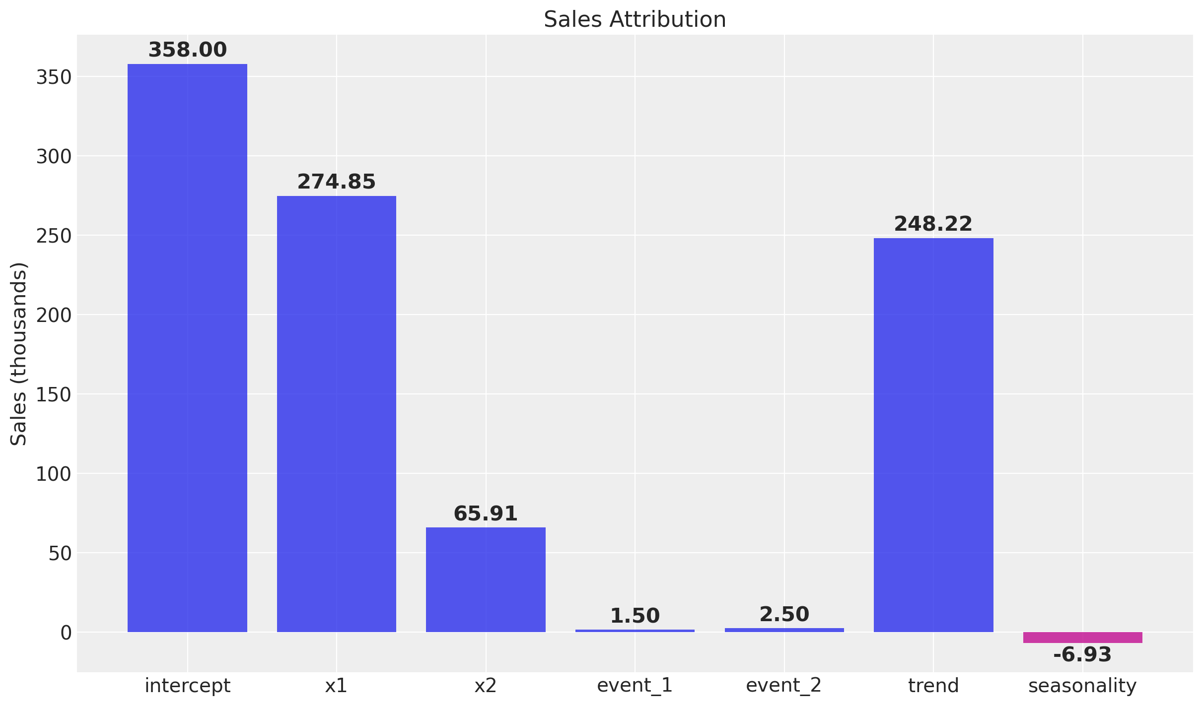 Time-varying Intercept: Capture time-varying baseline contributions in your model (using modern and efficient Gaussian processes approximation methods). That is, we allow the intercept term \(\alpha = \alpha(t)\) to vary over time. See mmm_tvp_example.